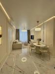 В квартире выполнен современный дизайнерский ремонт в светлых, актуальных тонах.