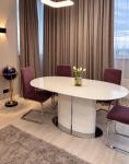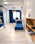 Квартира расположена на 13 этаже, общая площадь 91 м2. Удобная и продуманная планировка: две отдельные спальни, просторная кухня-студия с зоной отдыха, раздельный санузел и вместительная гардеробная.