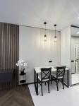 Благодаря панорамному остеклению во всю стену квартира наполнена естественным светом и выглядит просторной и уютной.