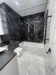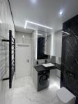 Кухня оснащена современной техникой, а ванная комната оформлена с использованием стильной сантехники и аксессуаров.