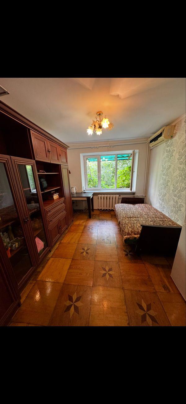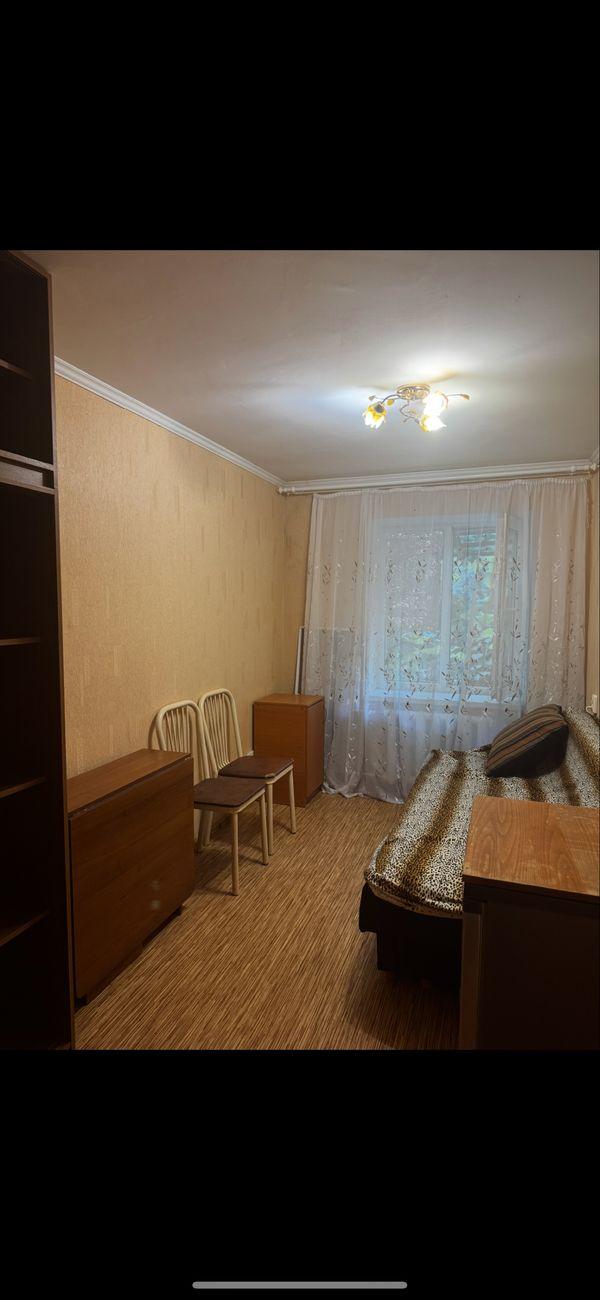 Две комнаты . Смежно-раздельные. В коридоре две личные кладовки. Кухня и с/у на троих соседей. Мебель и техника остаются. Рядом парк, супермаркеты, остановки транспорта. Коммуна чистая, в хорошем жилом состоянии, соседи благополучные.