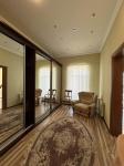 На первом этаже кухня, прихожая, санузел, просторная гостинная, спальня. На втором этаже спальня санузел, кабинет, гардеробная комната, кладовка .