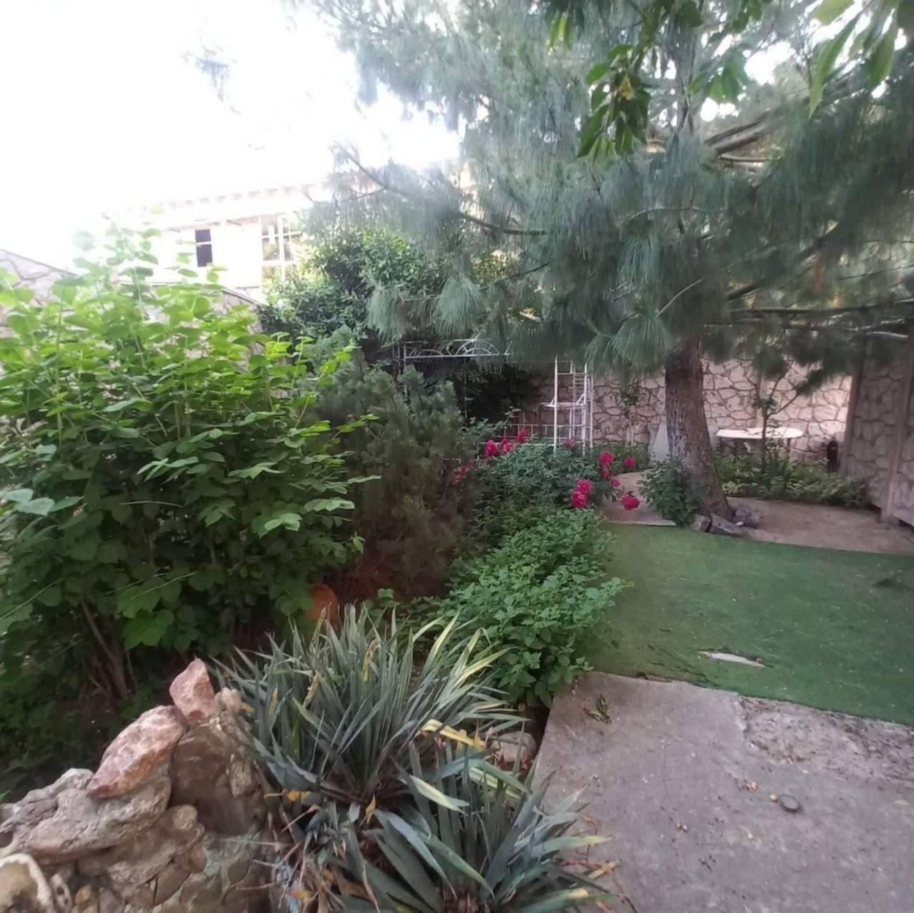 Зелёная территория с фруктовыми деревьями, розами и декоративными растениями создаёт ощущение собственного уголка природы в городе.