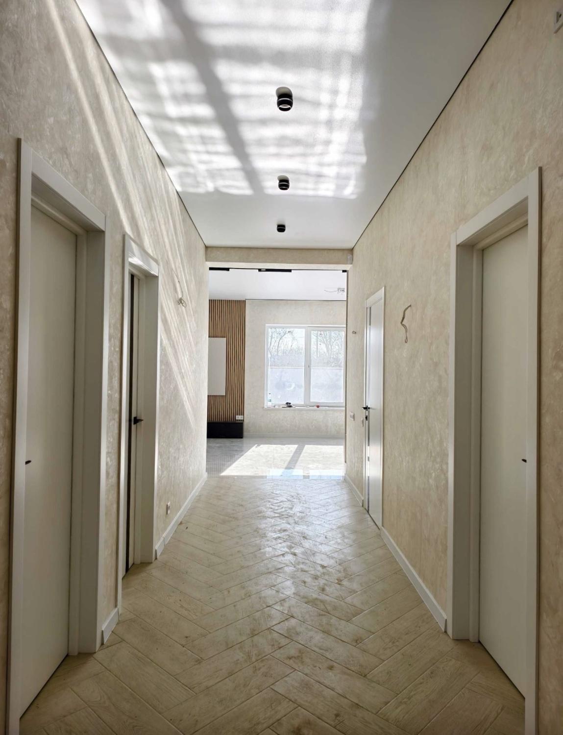 На первом этаже просторная кухня-студия с выходом на терассу, прихожая, 2 просторные спальни, мастер спальня с гардеробом и санузлом, гостевой санузел и топочная, высота потолков = 2,9 м.