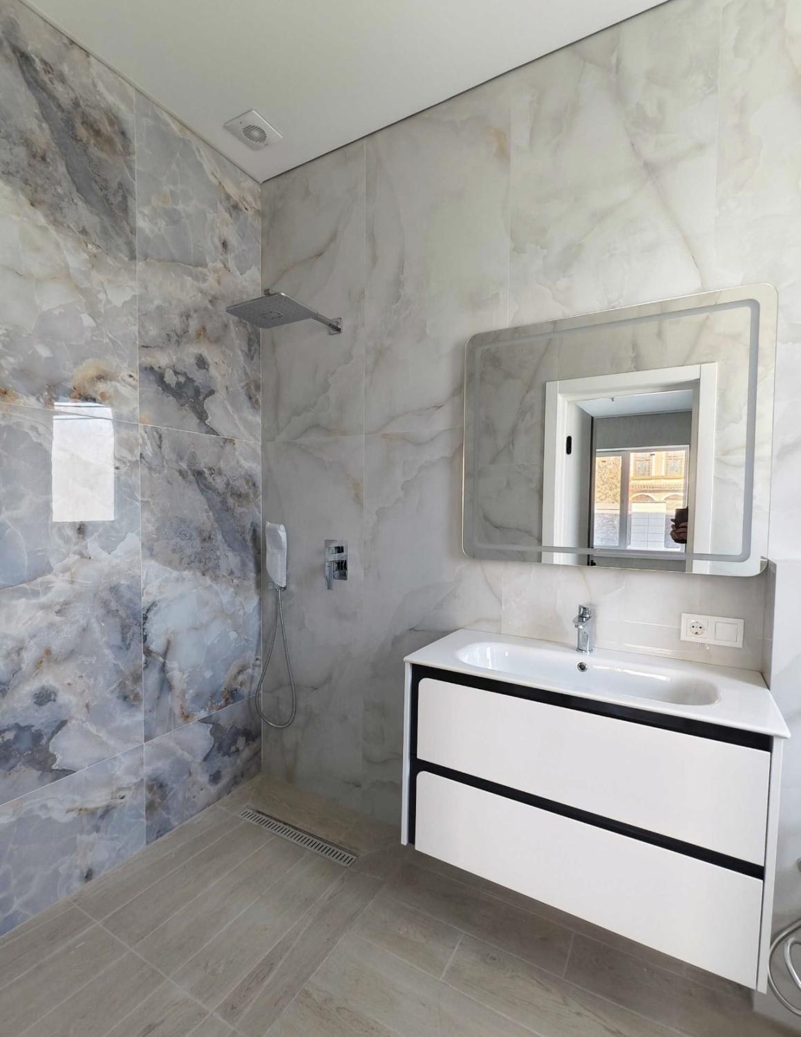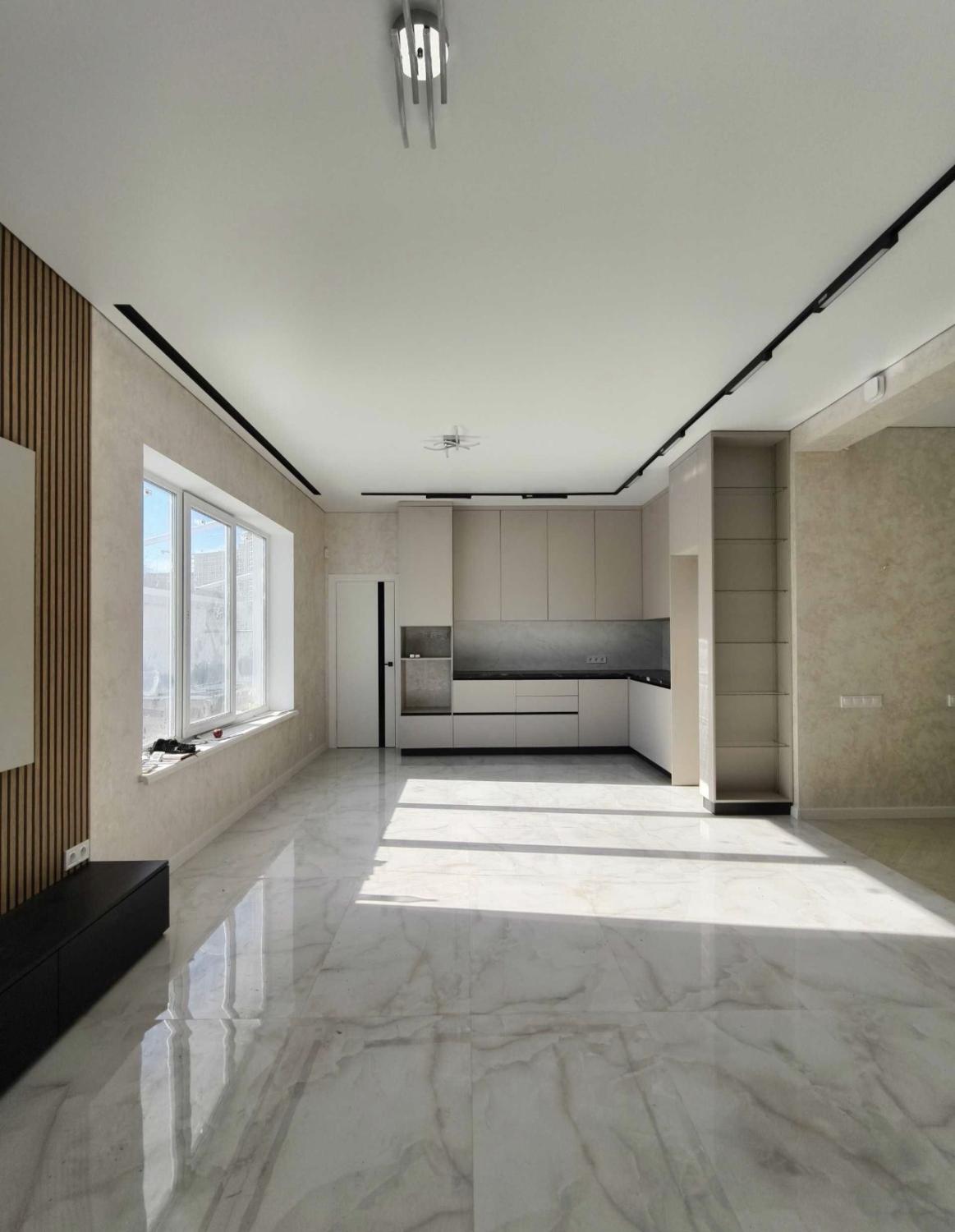 Выполнена высококачественная отделка, установлено качественное сантехническое и электрооборудование, кухонный гарнитур.