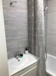 Совмещенный санузел, полностью обновленный. Туалет с инсталяцией. Теплый пол.