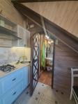 Расположен коттедж в тихом зелёном переулке популярной курортной зоны, в пешеходной доступности от моря.