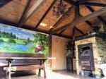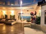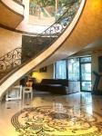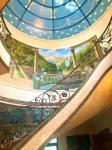 При входе в дом также отдельно имеется зимний сад с декоративной лепниной, оригинальным оформлением и росписью по потолку.
