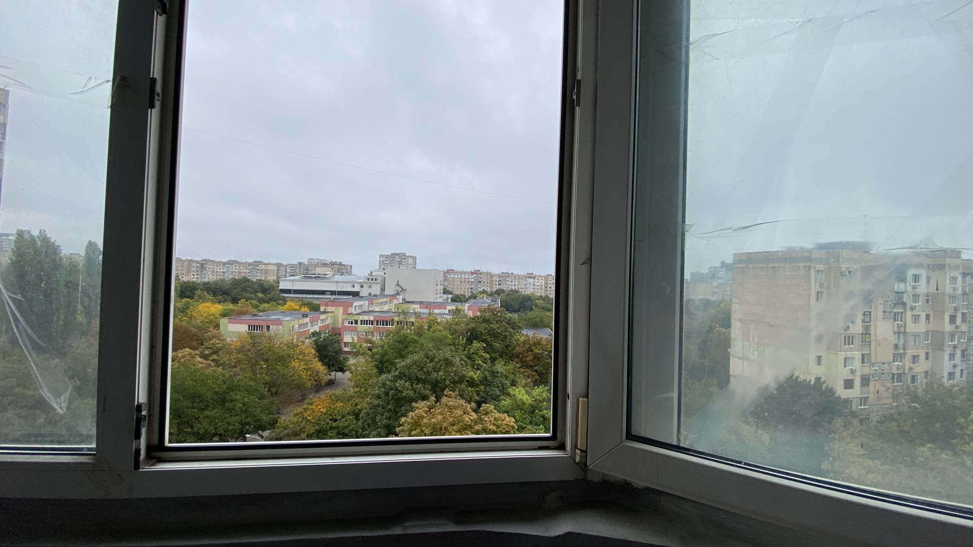 Краєвид із вікна: вид на місто, двір, вулиця;