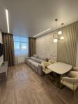 Пространство организовано с комфортом: жилая зона отделена от кухни-гостиной, интерьер выполнен в спокойных современных тонах, остаётся мебель и техника — всё готово для проживания.