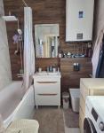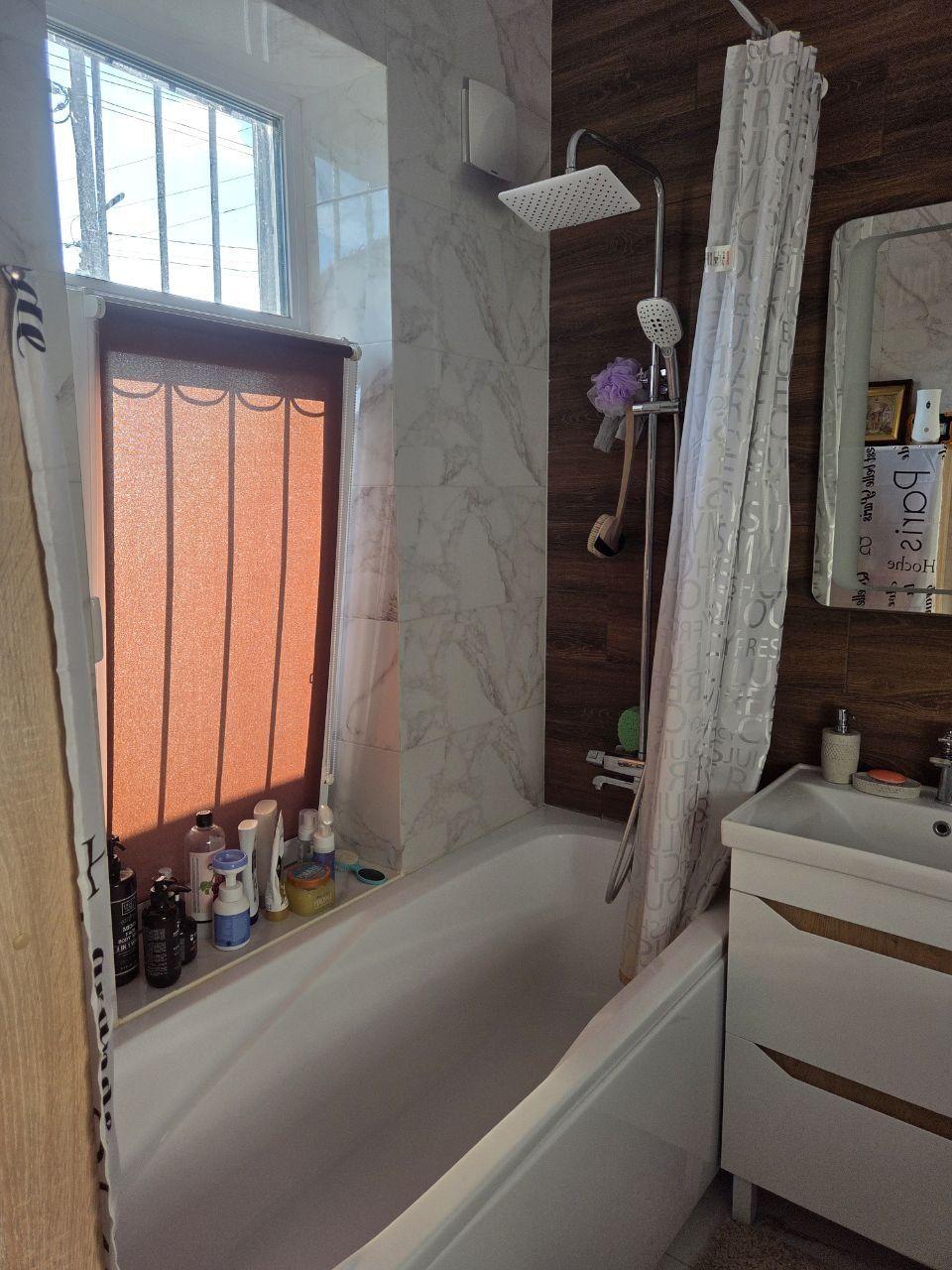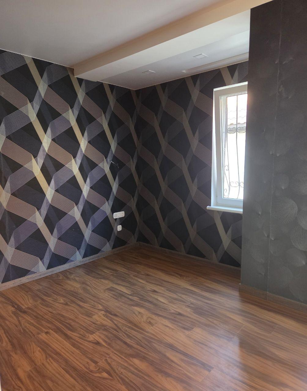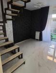 Новый, только закончены все ремонтные работы (осталось поставить 4 межкомнатные двери и обшить лестницу). 3 этажа общей площадью 100 квадратных метров.3 спальные комнаты, гардеробная комната, ванная и санузел, кухня -студия ,а так же спереди и сзади два небольших дворика .На заднем дворе посажены розы, туи .На полу искусственная трава Очень тихое место. Тревоги не слышно .На всех окнах решётки, на заднем панорамном окне электрические ролеты .Дом стоит по гос ,охраной, датчики движения на всех этажах и во всех комнатах, датчики открытия на всех дверях. ы выведены на монитор при входе в дом .Бронированная входная дверь .Установлен газовый 2-х контурный котёл ,пол с подогревом .Дом очень тёплый ,пол обогревает все три этажа ,батареи автоматически отключаются.